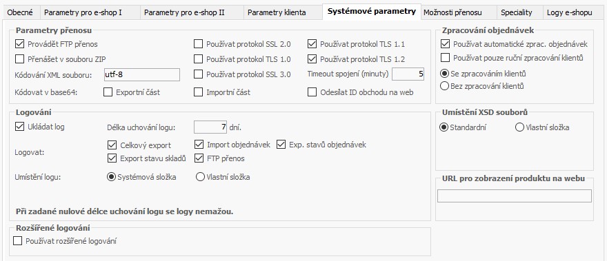 Změny v nastavení na záložce Systémové parametry v aplikaci *8776 Konektor pro e-shop je třeba vždy konzultovat s pracovníky WinFAS technické podpory konektoru pro e-shop a dodavatelem webové části e-shopu.