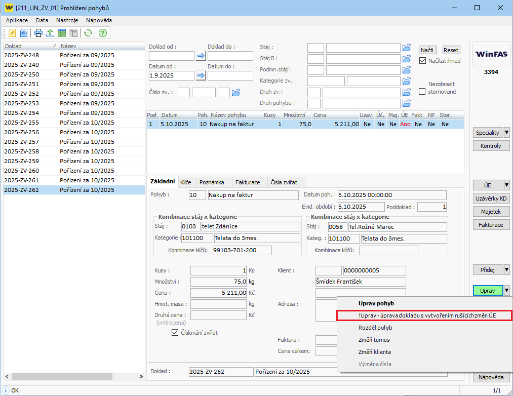 - Po opravě je třeba pohyb znovu načíst do ÚE v aplikaci *3396 pomocí tlačítka Načti pohyby.