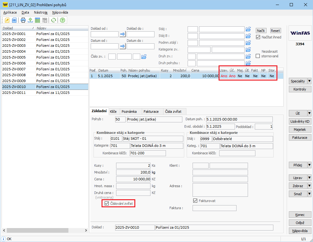 - Status fakturace vám říká, zda je pohyb (zvíře) navázáno na fakturu.
