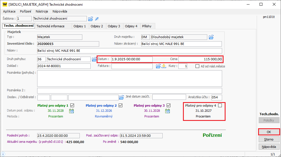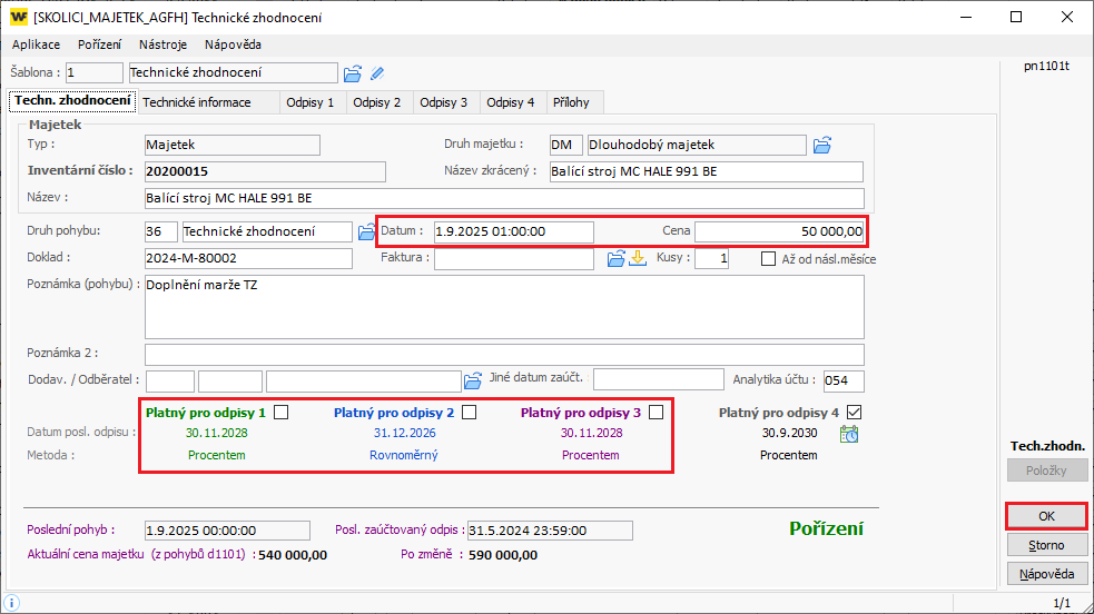 Pokud je v důsledku provedeného technického zhodnocení nutné prodloužit životnost majetku, postupujte dle návodu +1778.