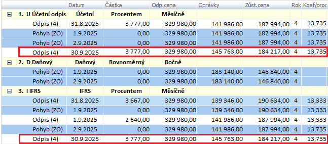 Po provedení tohoto postupu by se měly IFRS odpisy shodovat s účetními odpisy.