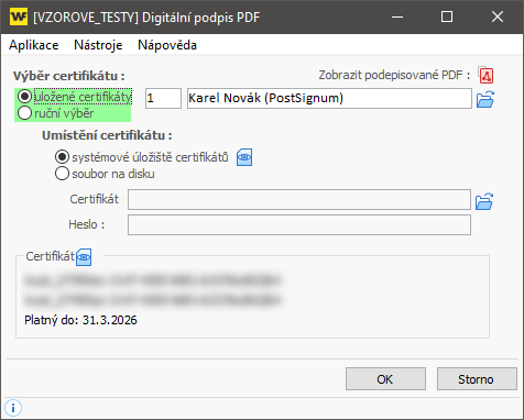 Podepsání PDF pomocí certifikátu