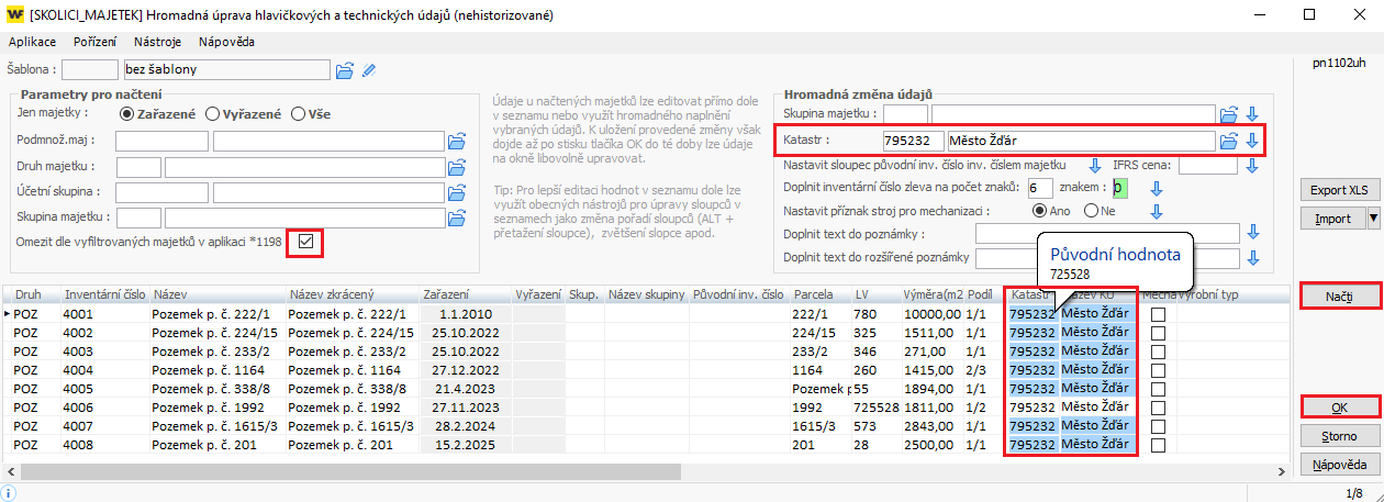 Tento návod popisuje postup provedení hromadných změn majetku (nehistorizovaných, tzn. nejedná se o pohyb majetku) a možnost plnění hlavičkových údajů pomocí hromadného importu z XLS souborů.