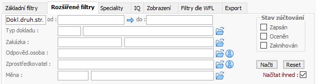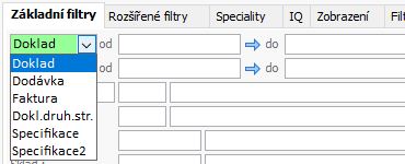 - pozn. možné filtrovat podle dokladu z RZ, dodávky, faktury, dokl.druh.str., specifikace (vyberete při kliku do pole "Doklad")