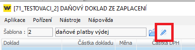 Po uložení tabulky DPH proběhne automatické zaúčtování dokladu na základě účtu kódu DPH a účtu daňového dokladu z platby. Účet daňového dokladu z platby se přebírá z knihy dokladu, popř. šablony. V případě, že účet na knize není nastaven jako jedinečný, lze ho při pořízení dokladu změnit a to přímo na poddokladu daňového dokladu z platby.