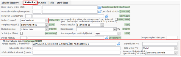 - Vlastní označení pracovní pozice odpovídá více pozicím dle CZ-ISCO (např. THP), pokud i nadále chcete takto evidovat, nutné nastavení v apl. *7011 – tl. Pozice