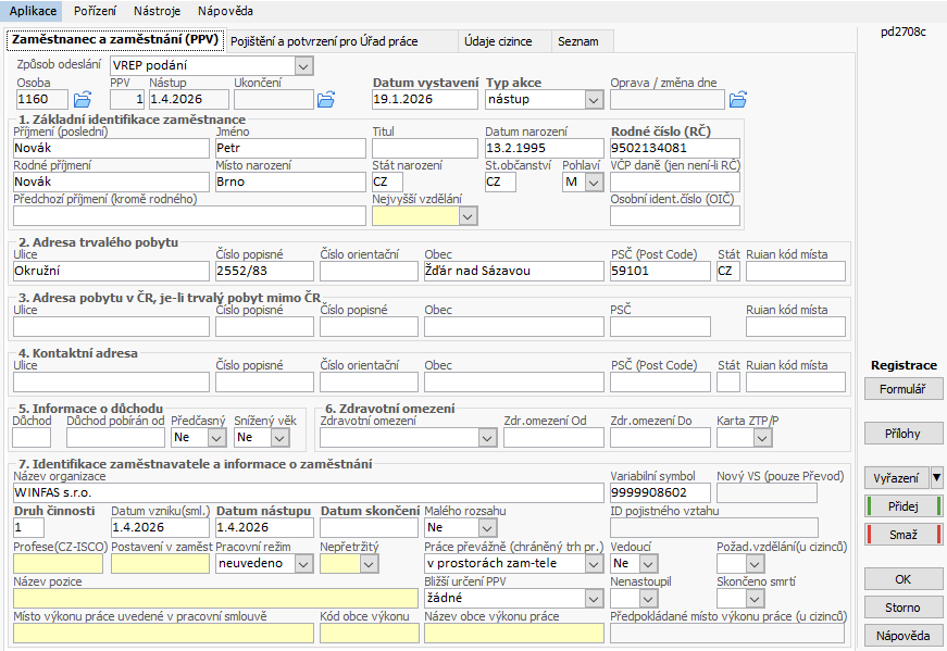 U cizinců doplňte údaje v apl. *7011 Zaměstnanci a PPV