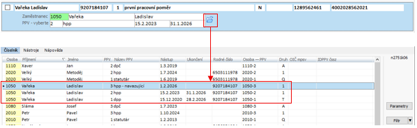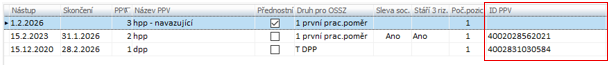Při importu ID PPV, ze služby Seznam zaměstnanců, se nabídne jeden z návazných PPV (skončený nebo návazný), pokud: