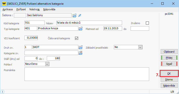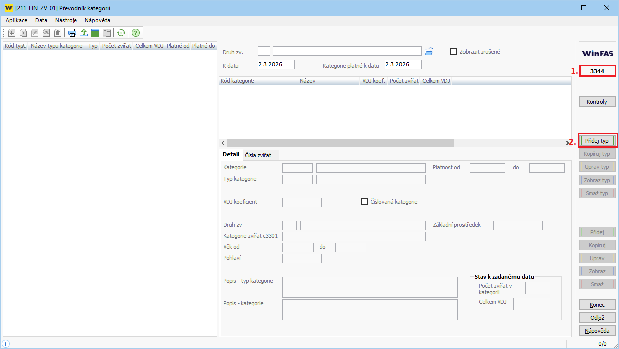 - 4. K zadanému typu je poté třeba přiřadit kategorie zvířat, u kterých se má provádět přepočet dobytčích jednotek.